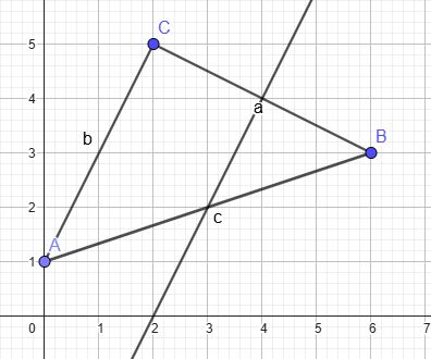 | 8. | Gegeben ist ein Dreieck mit den Eckpunkten A(2/1), B(5/1) und C(4/3). a) Bestimmen Sie die Gleichungen der durch die Eckpunkte gehenden Geraden. b) Ermitteln Sie die Gleichung der Seitenhalbierenden sb. c) Handelt es sich um ein rechtwinkliges Dreieck?