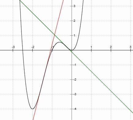 m = f '(x1) = f '(-1,466) = 8⋅(-1,466)3 + 21⋅(-1,466)2 + 10⋅(-1,466) ≈ 5,27
