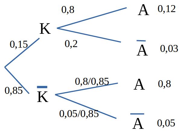 Gegeben: P(A) = 0,08 ; P(K) = 0,15 ; P( K ∩ A) = 0,8