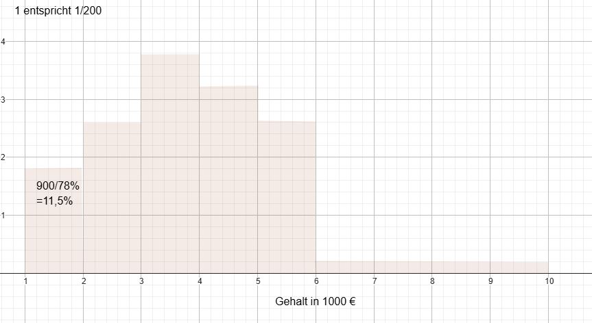 Im Bild entspricht dem ersten Intervall zwischen 1000-2000 € eine Fläche von 11,5%.