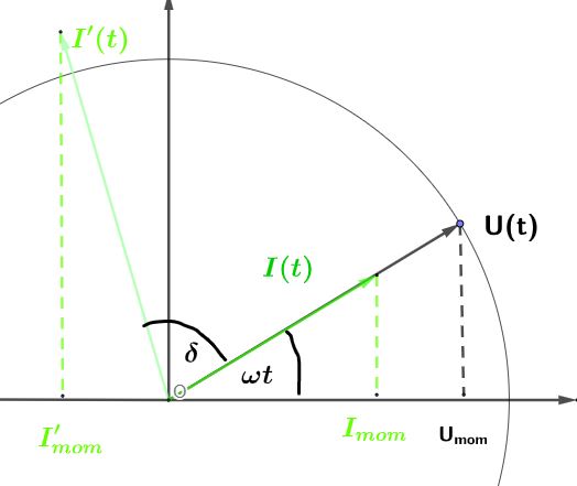 sowie δ = arctan \(\large \frac{\omega L-\frac{1}{\omega C}}{R_{\Omega}}\)