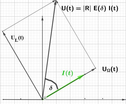 b) \(R_{ges}~=~R_{\Omega}+R_L+R_C~=~R_{\Omega}+(\omega L-\frac{1}{\omega C})i~=~|R|~E(\delta)\)