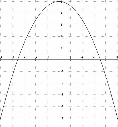 Die Bahnkurve verläuft ausgehend vom Punkt (0/5) parabelförmig zum Punkt (5/-5) und zurück und weiter parabelförmig zum Punkt (-5/-5) und zurück.