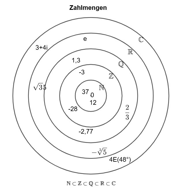Fazit: Irrationale Zahlen = transzendente Zahlen \( \cup \) nichtrationale algebraischen Zahlen.